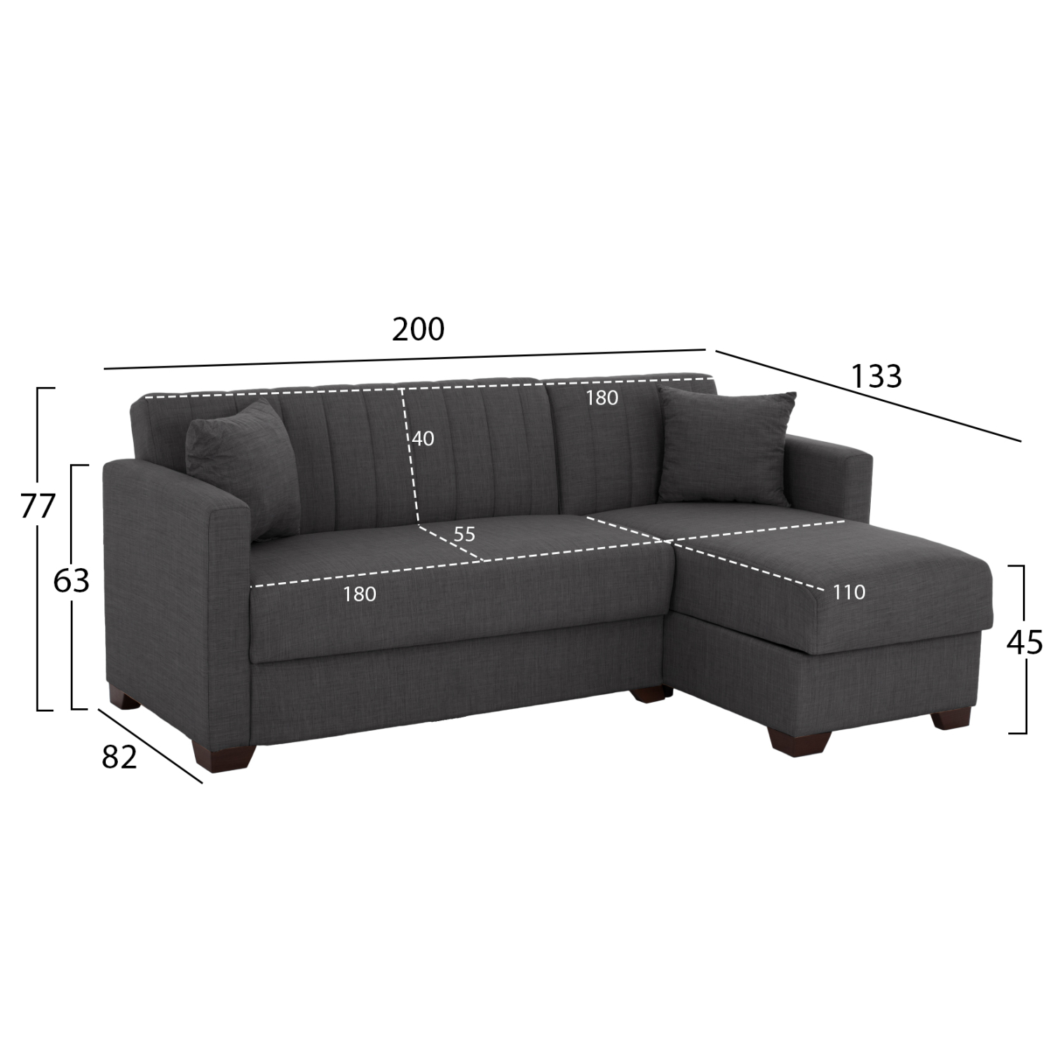 ΚΑΝΑΠΕΣ ΚΡΕΒΑΤΙ GHUFRAN ΓΩΝΙΑ ΑΝΑΣΤΡΕΨΙΜΗ ΓΚΡΙ ΜΕ ΑΠΟΘΗΚΕΤΙΚΟ ΧΩΡΟ HM3244.03 202x140x78Yεκ.