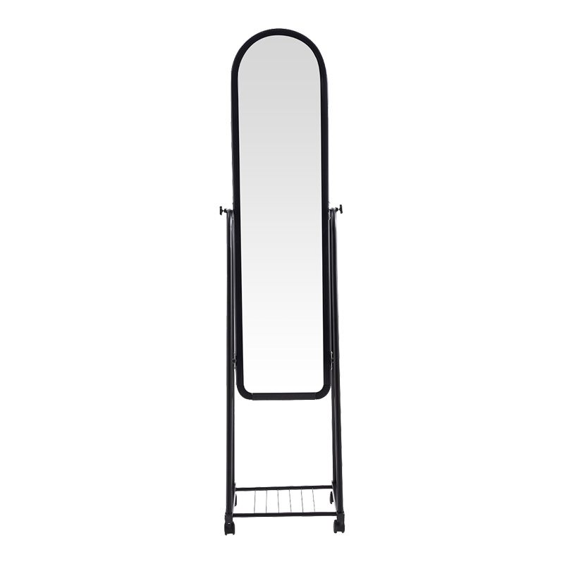 Καθρέπτης τροχήλατος Lomna pakoworld pp-μεταλλικός με ράφι σε μαύρη απόχρωση 38.5×37.5×160εκ