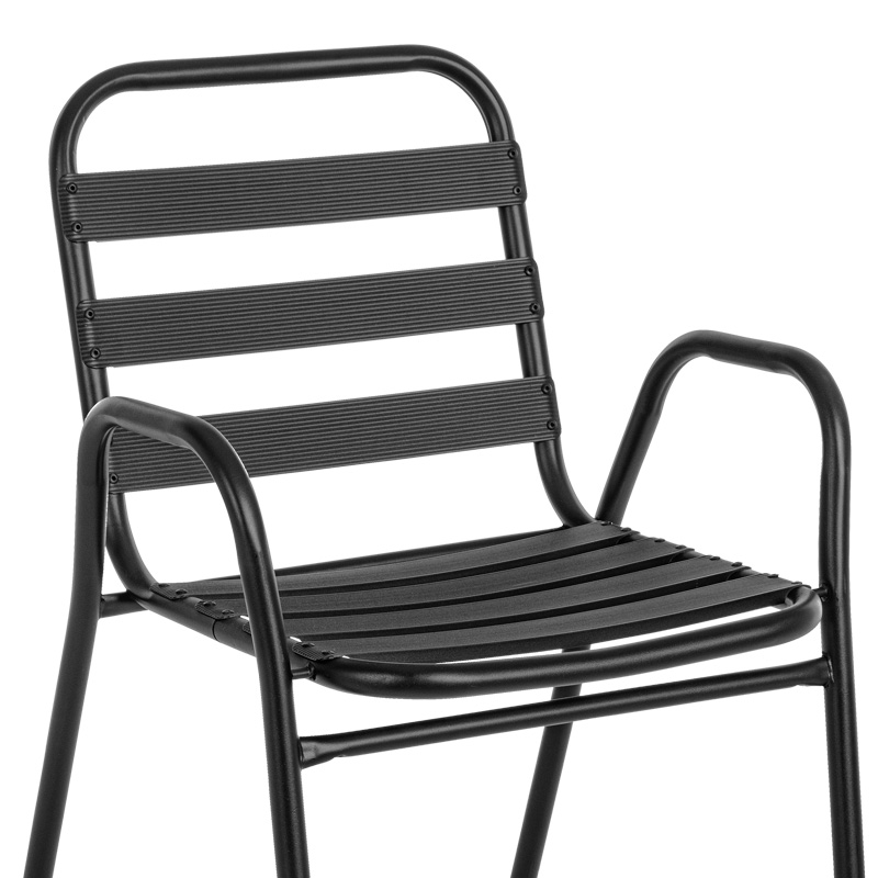 - Stable frame made of high-quality metal that is resistant to wear and tear and time, while the seat and back pieces are made of aluminum slices. The metal provides durability and stability, while the aluminum slices add lightness and a modern feel to the design. This armchair is ideal for outdoor use, as the weather resistance of aluminum makes it resistant to exposure to sunlight and moisture.
