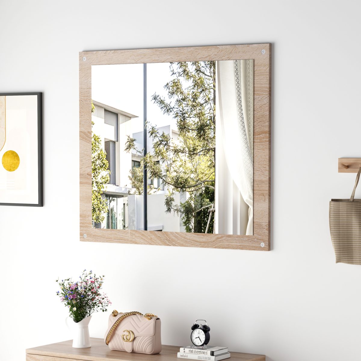 WALL MIRROR HM4360 MELAMINE IN WOODEN FRAME 80x70x1.8(depth)cm