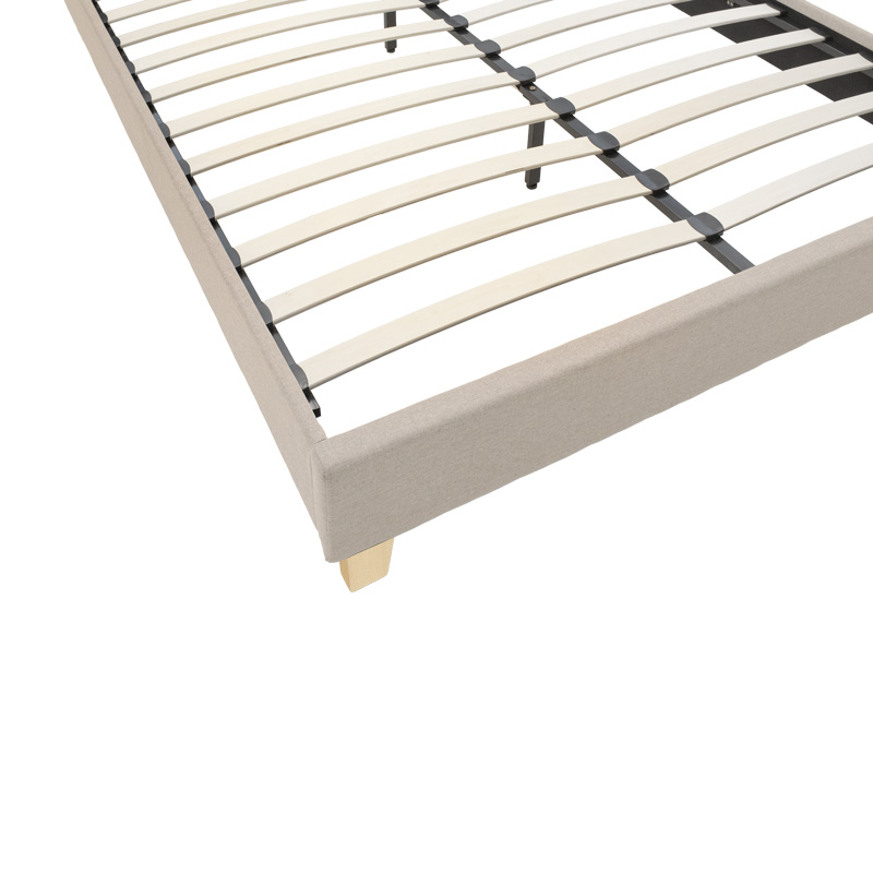 Mago pakoworld bed, ecru fabric with natural wooden legs, 140×200cm
