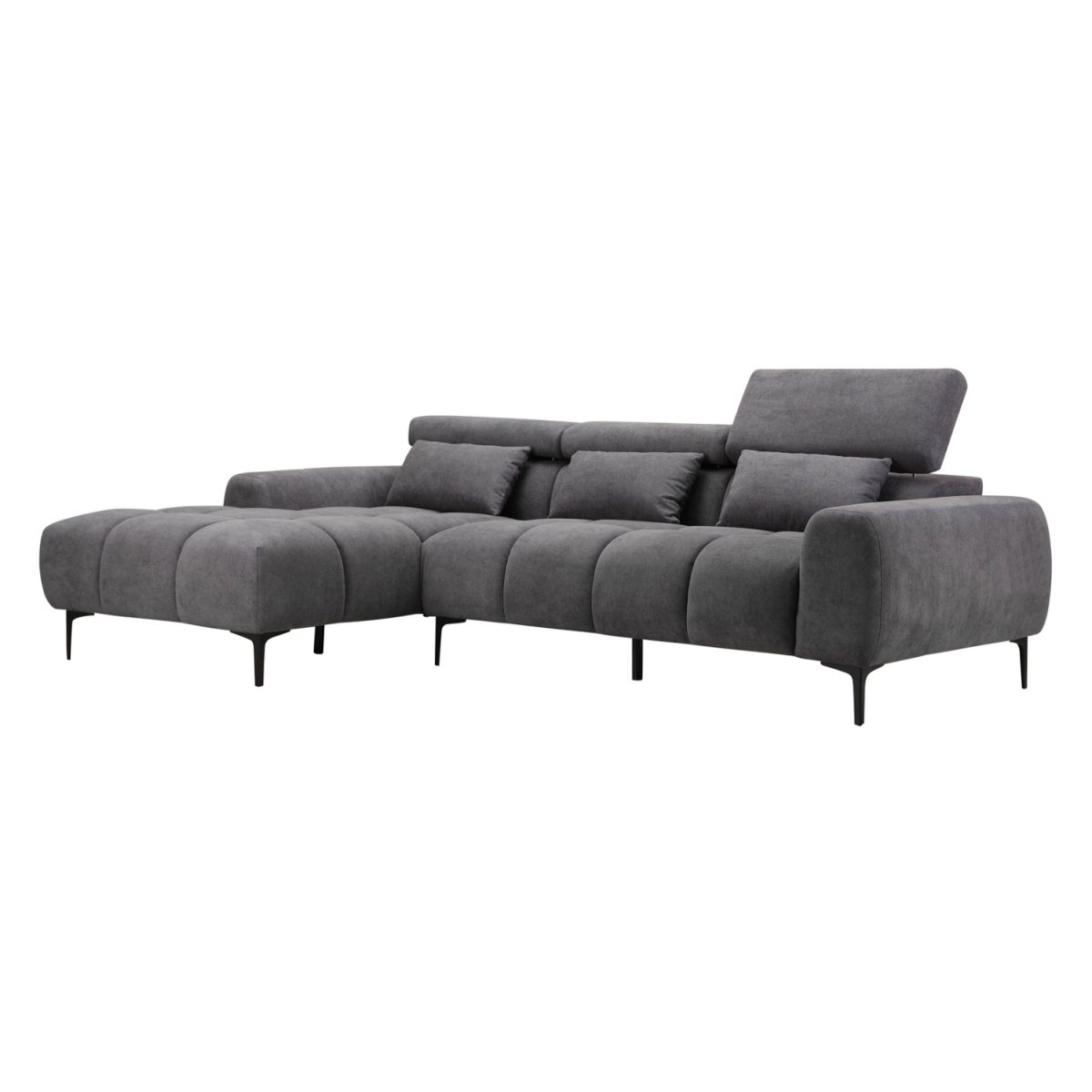 Σας παρουσιάζουμε τον DIVYA. Έναν ολοκαίνουργιο γωνιακό καναπέ (αριστερή γωνία) επενδυμένο με εξαιρετικής ποιότητας συνθετικό ύφασμα Suede σε ΓΚΡΙ χρώμα. Ο καναπές διαθέτει ψηλά μεταλλικά πόδια σε μαύρο χρώμα και κάθισμα με pocket springs σε συνδυασμό με αφρώδη υλικά. Η άνεση που προσφέρει επιτείνεται κι από το γεγονός ότι τα μαξιλάρια κεφαλής στο επάνω μέρος της πλάτης έχουν ρυθμιζόμενη κλίση, ενώ το σετ συμπληρώνουν και 3 μικρά διακοσμητικά μαξιλάρια.