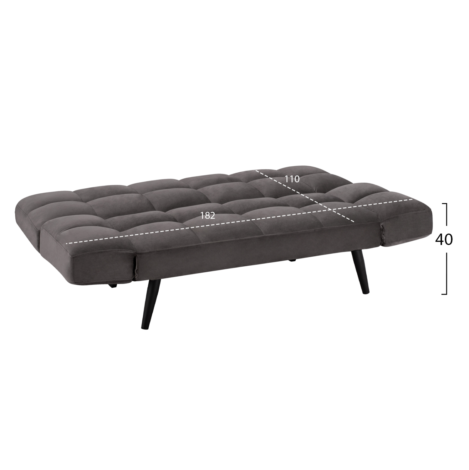 3-SEATER SOFA BED IN GREY VELVET HM3167.01 182X80X88H cm.