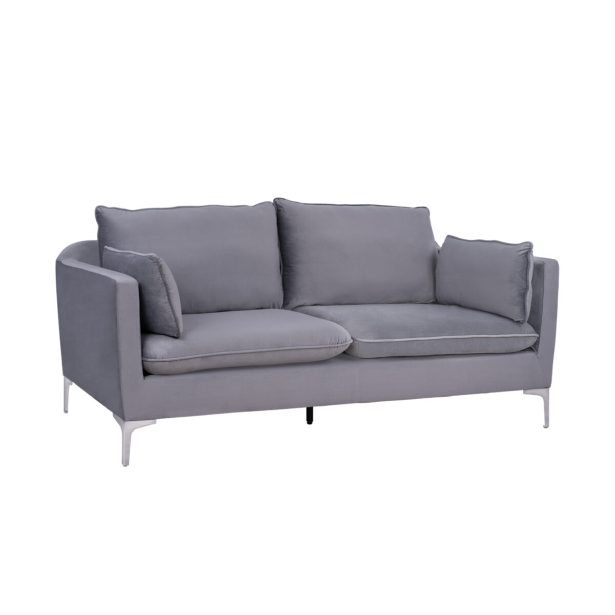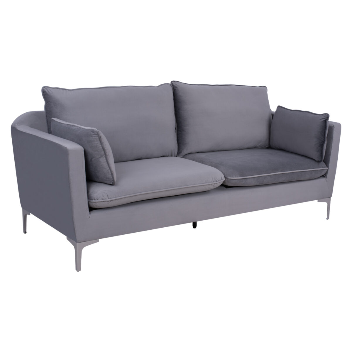 Καναπές τριθέσιος KAREN σε γκρι απόχρωση με μεταλλικά πόδια σε απόχρωση χρωμίου.