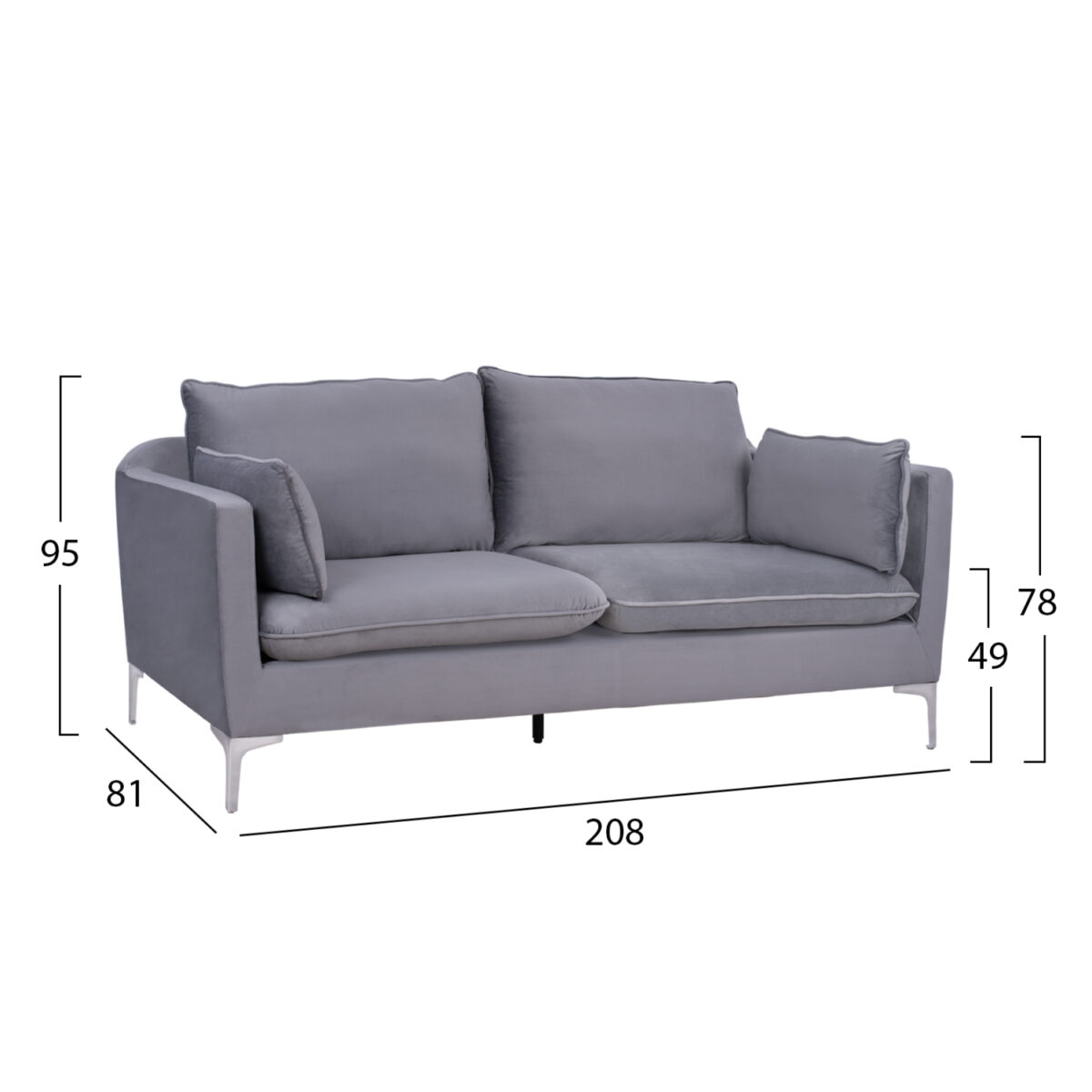 SOFA KAREN 3-SEATER GREY VELVET & CHROME METAL LEGS HM3136.31 208x81x95 cm.