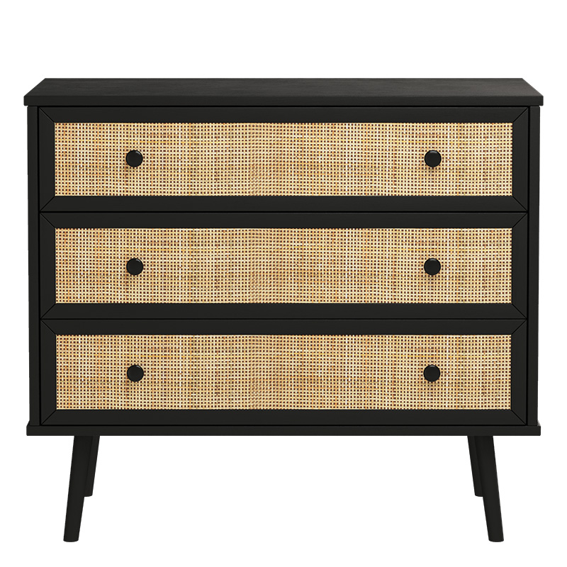 Συρταριέρα Oslo pakoworld 3ων συρταριών μαύρο-φυσικό 90x39x79εκ