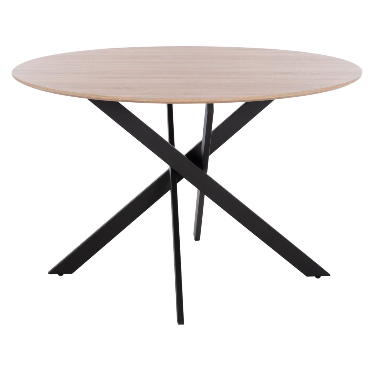 Τραπέζι τραπεζαρίας Rosario, σε sonama απόχρωση και μαύρα πόδια Φ120Χ75 εκ.