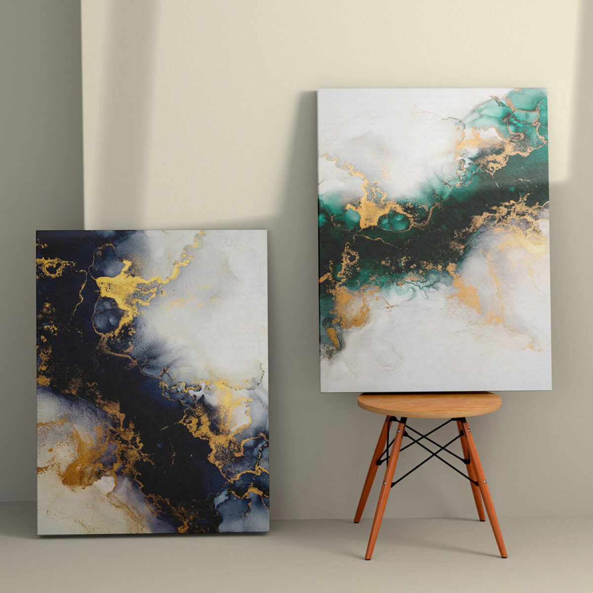 Οι πίνακες τοίχου μεταμορφώνουν τον τρόπο που αντιλαμβανόμαστε έναν χώρο. Διακοσμήστε, λοιπόν, τον χώρο σας με την καινούργια σειρά πινάκων τοίχου GOBI! Αυτοί οι πολύχρωμοι πίνακες (2τμχ) απεικονίζουν δύο παρόμοια αφηρημένα σχέδια σε διαφορετικές κυρίαρχες αποχρώσεις (μπλε-πράσινο), και έχουν υλοποιηθεί σε εκτυπωμένο καμβά σε ξύλινο πλαίσιο, και μπορείτε να τους τοποθετήσετε είτε μαζί, είτε σε διαφορετικά σημεία τον καθένα!