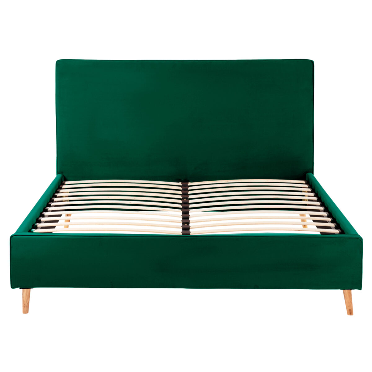Το υπέρδιπλο κρεβάτι INDRA είναι επενδυμένο με βελούδο σε χρώμα ΚΥΠΑΡΙΣΣΙ με ίδιο ρέλι στις ραφές. Το στρώμα που συνοδεύει το κρεβάτι τοποθετείται σε δύο σειρές ανατομικές τάβλες, είναι διπλής όψης και έχει τεχνολογία με pocket springs (ανεξάρτητα ελατήρια). Τα πόδια είναι ξύλινα σε φυσικό χρώμα.