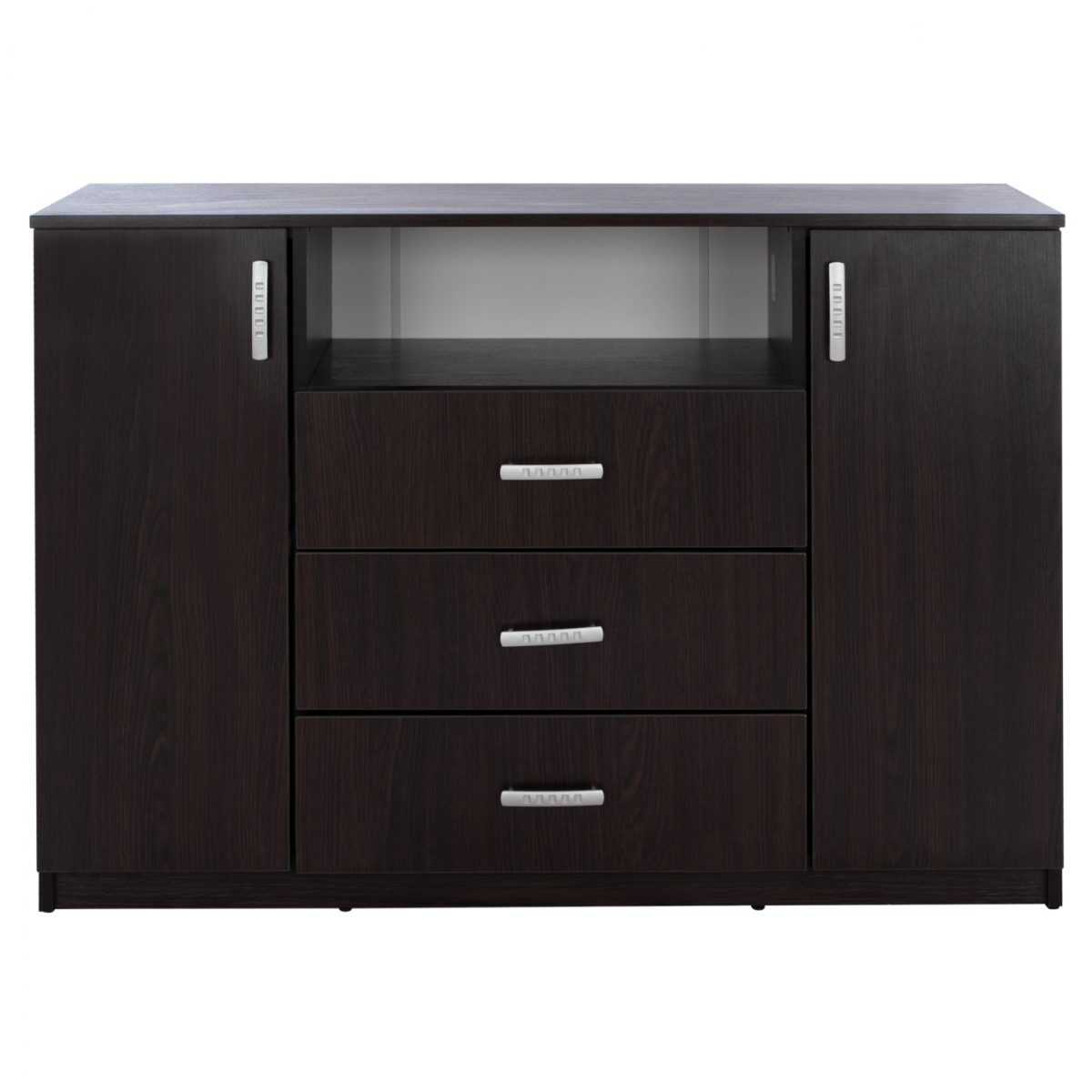 Μπουφές σε απόχρωση wenge που θα ολοκληρώσει την αισθητική του χώρου σου, προσφέροντας σου παράλληλα έξτρα χώρους προβολής και αποθήκευσης αντικειμένων.