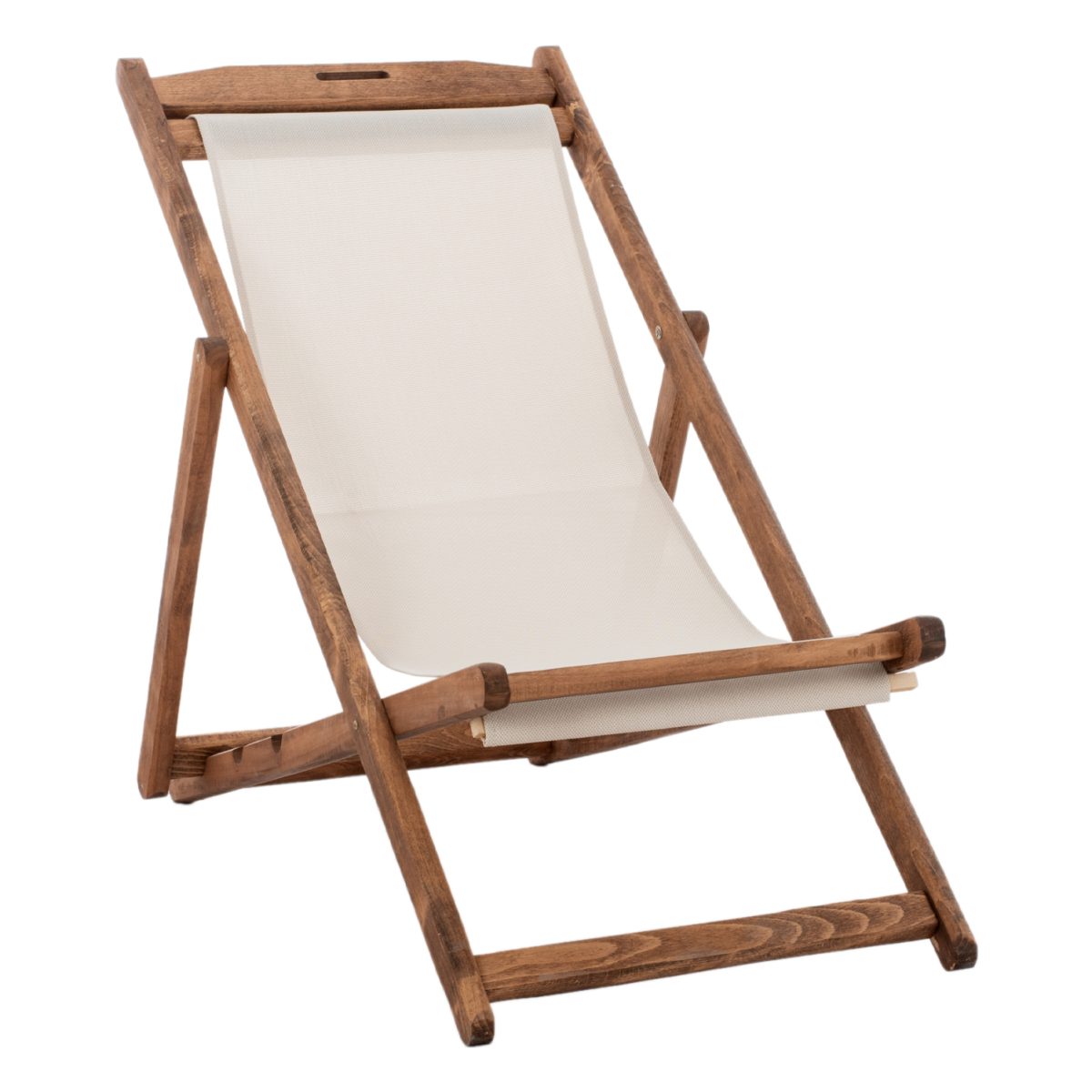 Σεζλόνγκ Λήμνος, χωρίς μπράτσα σε καρυδί απόχρωση και pvc εκρού πλέξης 2×1.