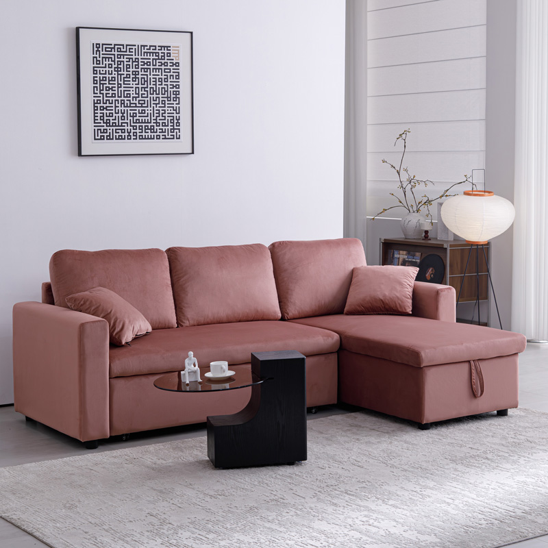 Γωνιακός αναστρέψιμος καναπές κρεβάτι Kamore pakoworld με αποθηκευτικό χώρο σάπιο μήλο βελούδο 223x146x85εκ