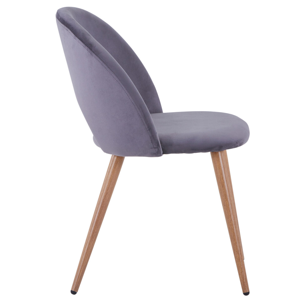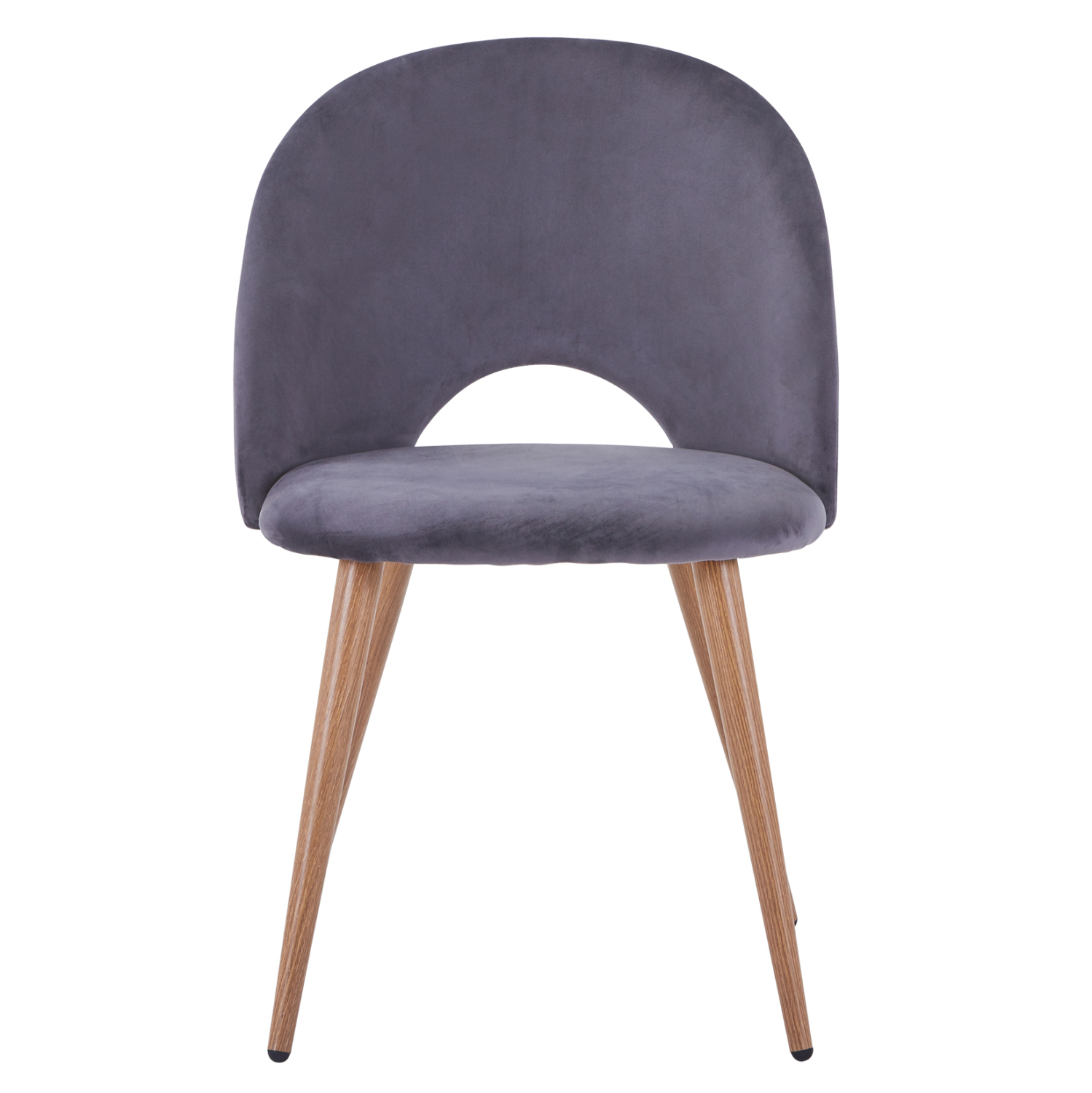 Καρέκλαι SADIE επενδυμένη με βελούδο σε γκρι απόχρωση. Τα πόδια είναι μεταλλικά, βαμμένα έτσι ώστε να αποδίδουν την όψη του ξύλου.