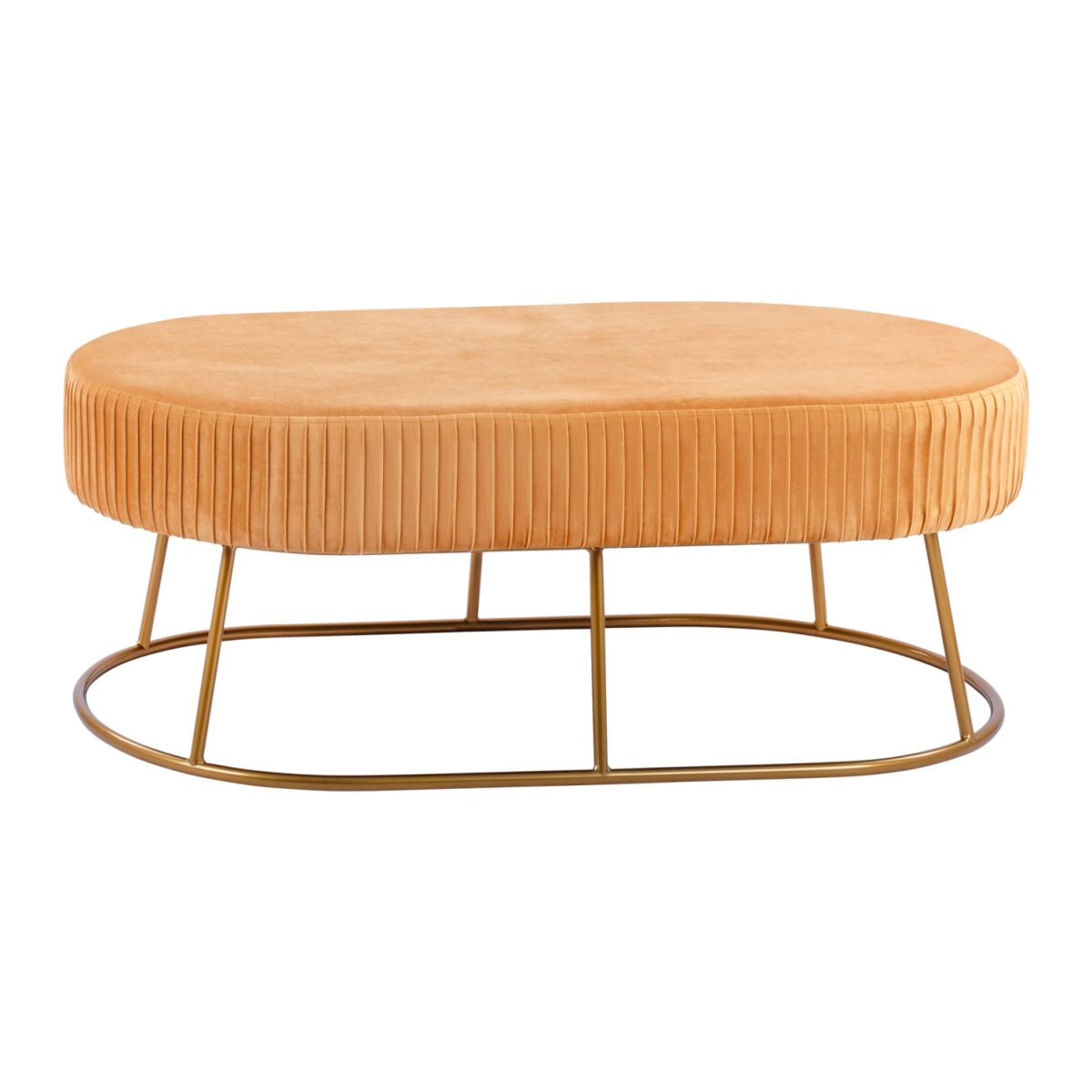 Σκαμπό παγκάκι ALINAFE από βελούδο σε χρυσή απόχρωση με μεταλλική βάση.