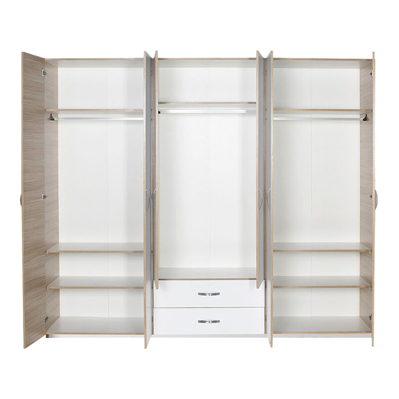Ντουλάπα ρούχων Dormie pakoworld εξάφυλλη με συρτάρια σε λευκή απόχρωση 206x52x213εκ