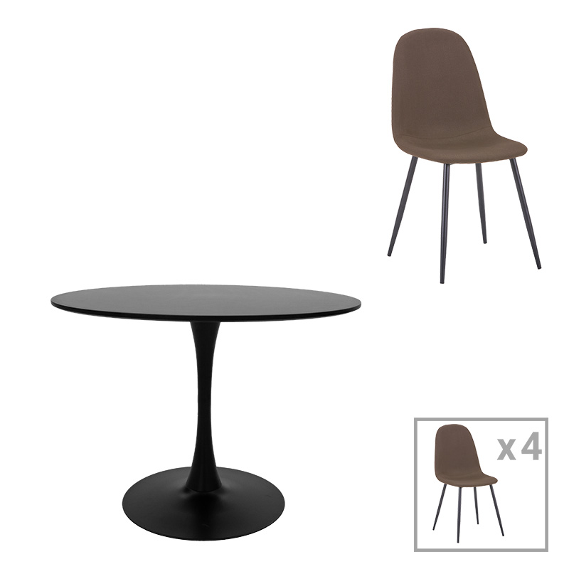 Τραπεζαρία Bella-Balou pakoworld σετ 5τεμ MDF μαύρο-ύφασμα καφέ Φ100×73εκ
