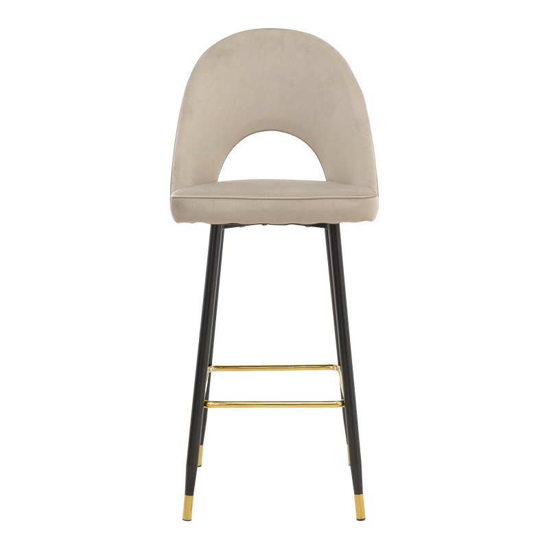 Σκαμπό μπαρ Casenio pakoworld μπεζ βελούδο-πόδι μαύρο με χρυσό μέταλλο 48x50x117εκ