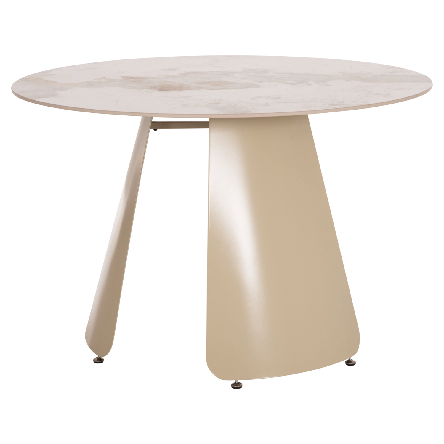 ΤΡΑΠΕΖΙ ΤΡΑΠΕΖΑΡΙΑΣ ΣΤΡΟΓΓΥΛΟ SEDAR HM18326 ΚΕΡΑΜΙΚΟ TOP–ΚΡΕΜ ΜΕΤΑΛ.ΠΟΔΙΑ Φ120×78Υ